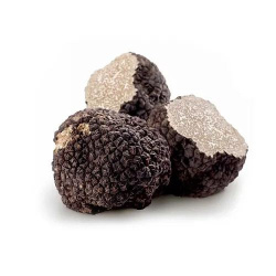 Черный зимний трюфель (Tuber Melanosporum) – это подземный гриб, который по праву считается одним из самых дорогих и изысканных деликатесов в мире. Его плодовое тело имеет клубневидную форму и покрыто бугристой черной кожурой. Внутри трюфель мясистый, с мраморным рисунком прожилок белого и серого цвета. Имеет грибной вкус с привкусом хорошо прожаренных семечек или грецких орехов, а также характерный аромат.