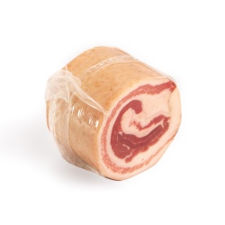 Панчетта с трюфелем – это сыровяленая свиная грудинка, одна из разновидностей итальянского бекона. Для приготовления продукта специально выращивают свиней особой породы. Но используется сырье только с брюха животного. Деликатес обладает классическим мясным ароматом и немного пикантным привкусом.