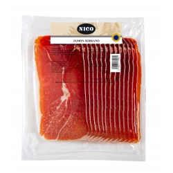 Хамон Серрано, известный во всем мире деликатес, изготавливается из свинины по традиционному испанскому рецепту и выдерживается не менее 7 месяцев. Нарезанный слайсами хамон имеет специальную пленку между кусочками мяса, которая предотвращает их слипание и делает употребление удобным. Этот деликатес обладает насыщенным ароматом, приятным натуральным вкусом и нежной текстурой, с хорошим балансом всех ингредиентов, что удовлетворит даже самого требовательного гурмана.