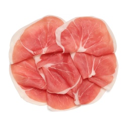 Прошутто ди Парма – это изысканный мясной деликатес, который нашел фанатов в каждом уголке мира. Такая ветчина вялится полтора года, при этом используется только соль. Красители и усилители вкуса в составе отсутствуют, что говорит о высоком качестве продукта. Нежный сладковатый привкус лучше всего раскрывается, если нарезать мясо не толще бумаги. Полупрозрачные слайсы розоватого оттенка тают во рту, даря неповторимое наслаждение, обволакивая идеальным послевкусием.