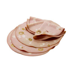 Мортаделла с оливками обладает характерным мясным ароматом с небольшой остринкой. Вкус не менее обворожительный, чем запах, что и привлекает гурманов. Тонко-нарезанная мортаделла украсит не только праздничный стол, но и станет отличным дополнением повседневного меню.