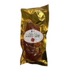 Копченая утиная грудка с пряностями – уникальный продукт, который сочетает в себе нежность утиного мяса и аромат пряностей. Деликатес обладает насыщенным вкусом и неповторимым ароматом, который никого не оставит равнодушным. Мясо имеет плотную текстуру и тает во рту. Аромат копчения гармонично дополняется ароматами используемых пряностей (черный перец, тимьян, розмарин и прочие).