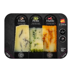 Хамон Серрано с трюфелем La Taperia – это гастрономическая жемчужина испанской кухни. Сочетание нежного хамона и благородного трюфеля создает уникальный солоноватый вкус и грибной аромат, который оценят истинные гурманы. Мраморное мясо с розовым оттенком и плотной текстурой тает во рту, оставляя долгое послевкусие. Этот деликатес станет отличным подарком для близких и друзей, так как продается в красивой картонной упаковке, а в набор к мясу идет деревянная доска и нож.