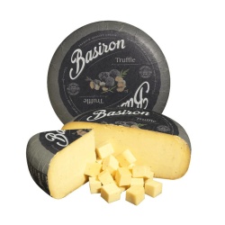 Basiron Truffle — кремовый голландский сыр с добавлением насыщенного аромата чёрного трюфеля. Он сочетает мягкость и бархатистую текстуру с деликатными землянистыми нотами трюфеля, что делает его великолепным выбором как для подачи на сырной тарелке, так и для использования в кулинарии. Аромат трюфеля гармонично сбалансирован с нежным сливочным вкусом сыра, создавая изысканный гастрономический опыт.