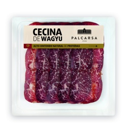Cecina de Wagyu от Palcarsa — это элитная испанская вяленая говядина, приготовленная из отборных мясов породы Wagyu, известной своим мраморным жиром и насыщенным вкусом. Мясо проходит бережную обработку, соление, бережное копчение и длительное выстаивание, благодаря чему продукт обладает нежной текстурой, утончённым ароматом и ярко выраженным мясным вкусом.