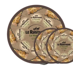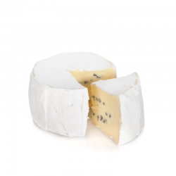 Французский мягкий сыр с двойными сливками и чёрным трюфелем, запечатанный в тонкой бархатистой кожуре, покрытой белой плесенью.