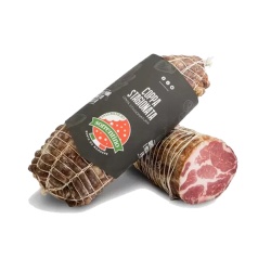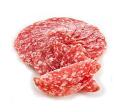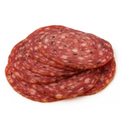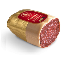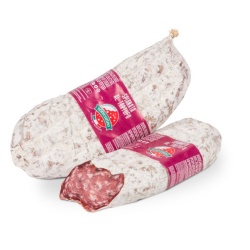 Салями Джентиле - деликатесное мясное ассорти, вежливое, нежное, первоклассная вяленая салями, приготовленная из отборной свинины, с добавлением черного перца и сухого белого вина, чтобы получить сладкий и нежный вкус продукта и отразить в аромате характер.