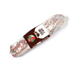 Салями с трюфелем, которая покрыта пармезаном, действительно неповторимый продукт. При создании деликатеса используется высококачественное нежирное мясо, обработанное вручную, полностью зачищенное, дополненное французскими трюфелями и покрытое пармезаном.